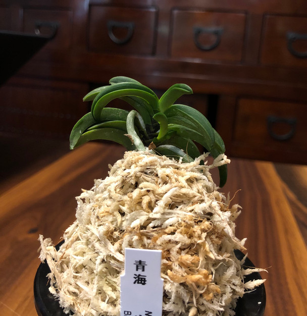 Seikai is a very coveted and classic variety of Neofinetia. These plants have been passed down for generations by hand division since what is thought to be sometime in the 1600's. This variety is sterile, therefore it cannot be reproduced by seed. Seikai can truly be considered a 'living antique'. It has 'Wankyokuba' (curvy leaves), 'Mambeba' (bean leaves) and a 'Namigata Tsuke', which is the wave pattern where the axis meets the leaves. The flowers are also uniquely-shaped and are pinkish in color, and face upwards. If you are a Neo connoisseur, you've got to have a Seikai!