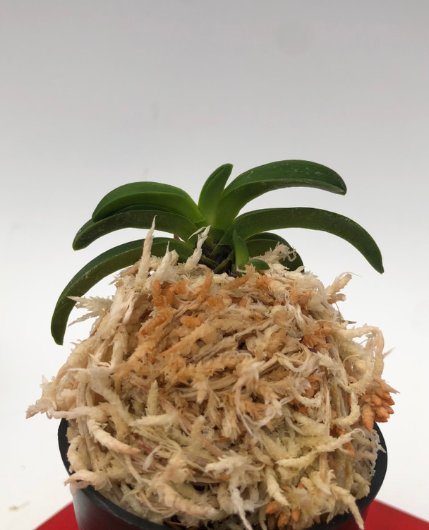 Seikai is a very coveted and classic variety of Neofinetia. These plants have been passed down for generations by hand division since what is thought to be sometime in the 1600's. This variety is sterile, therefore it cannot be reproduced by seed. Seikai can truly be considered a 'living antique'. It has 'Wankyokuba' (curvy leaves), 'Mambeba' (bean leaves) and a 'Namigata Tsuke', which is the wave pattern where the axis meets the leaves. The flowers are also uniquely-shaped and are pinkish in color, and face upwards. If you are a Neo connoisseur, you've got to have a Seikai!