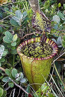 A recent discovery made in 2009 on Mount Victoria, Palawan, in the Philippines. This giant pitcher plant has pitchers that exceed Nepenthes rajah in size and there are reports of pitchers being able to hold 1.5 to 2 litres of liquid! In nature the pitchers are open and easily fill with rainwater. The rainwater and insectdissolving enzymes separate however, with the enzymes at the bottom of the pitcher and the rainwater in the upper regions of the pitcher. This species was named for Sir David Attenborough - the naturalist and explorer of BBC fame. Grow in intermediate to warm temperatures. Pot in New Zealand sphagnum moss and either just foliar feed or feed the roots with a mild orchid fertilizer like Green Jungle orchid food once per month.