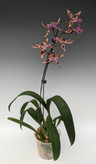 This dazzling intergeneric hybrid includes several notable genera in its genetic background, including Brassia, Miltonia, and Oncidium, with eight species ancestors in total! This intermediate-sized orchid blooms with a flush of spotted flowers in the spring or fall from its newest growths.
