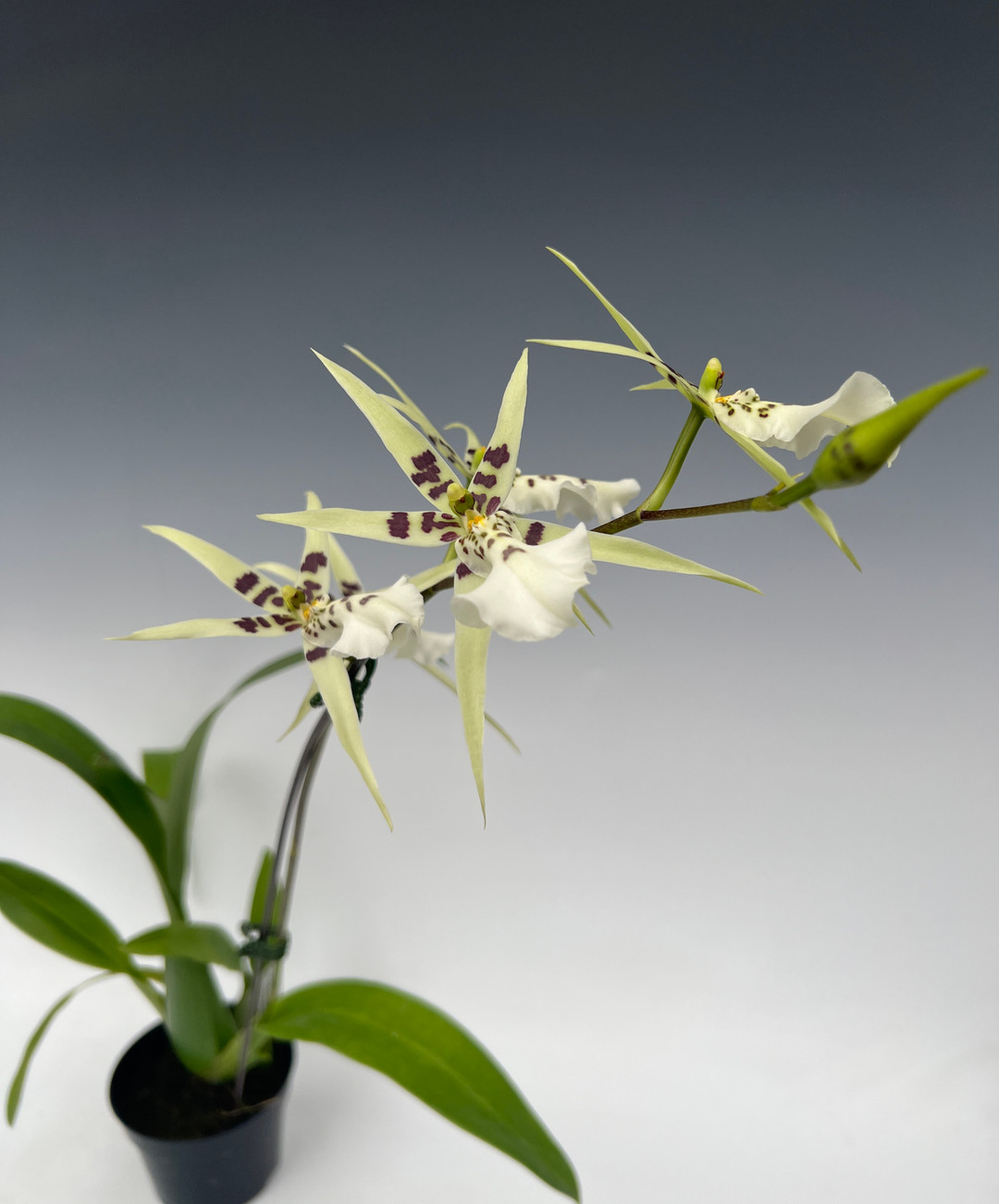 Beautiful larger flowered Brassia hybrid with waxy long lasting flowers. Grow in semi-shaded conditions, although bright filtered light is often necessary to induce flowering.