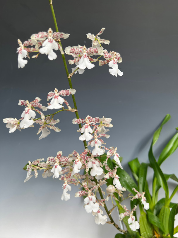 A beautiful, elegant tall multi-floral Oncidium hybrid with a lovely fragrance. These plants like moisture, therefore we grow them in sphagnum moss. However, many growers have had success growing them in bark mixes as well. These are mericlones, therefore they are consistent in quality and appearance! These can flower up to twice per year if grown well.