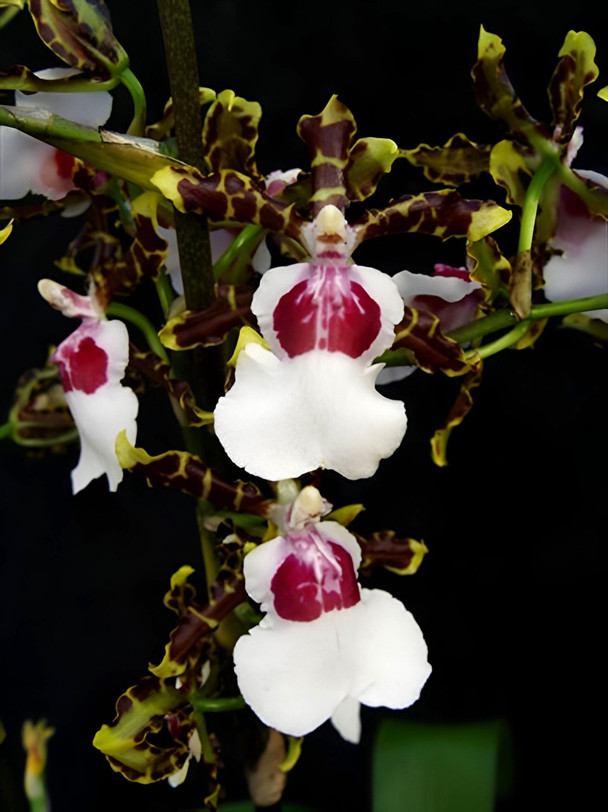 A floriferous Oncidium clone with a unique color combination. We have noticed a very light vanilla scent in the mornings on this variety.