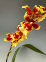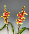 A nice mix of Oncidium and Miltoniopsis creates a flower right in between the two for size and shape. This is a colorful combination of red and yellow, and makes for an easy-to-grow hybrid!