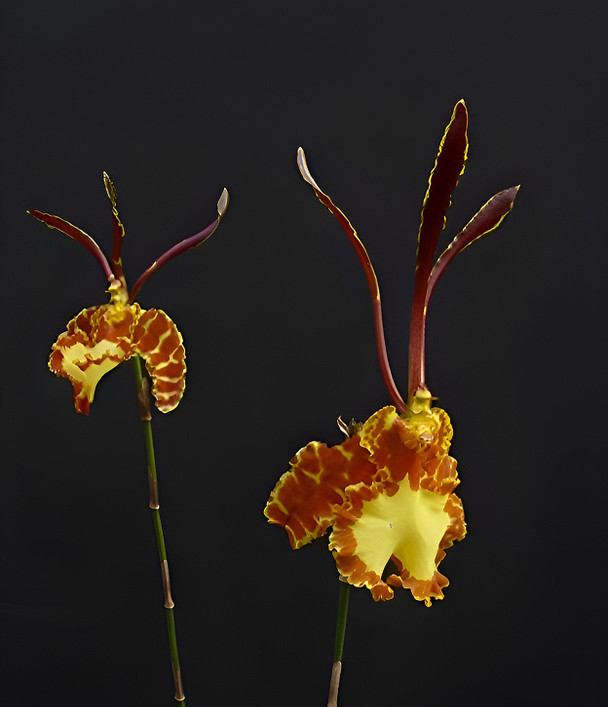 This is a hybrid mix of Central and South American Psychopsis, commonly known as the "Butterfly Orchid" due to its unique and elegant flower shape. They also have attractive and thick, slightly mottled foliage.