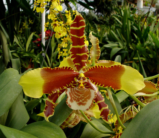 A new batch of this wonderfully large and showy variety of Rossioglossum. These plants are currently in 5" pots and the newest growths should be capable of producing flower spikes in 2024. These hybrids have parents that come from high-elevations in Mexico and Central America. They like moisture at the roots and prefer shady conditions. Despite being a higher elevation orchid, they can grow in a range of cool to warm temperatures. The flower spikes will only initiate if your evenings can be kept in the 60's to high 50's once the current bulb has matured before bloom season, which is the fall to winter months.
