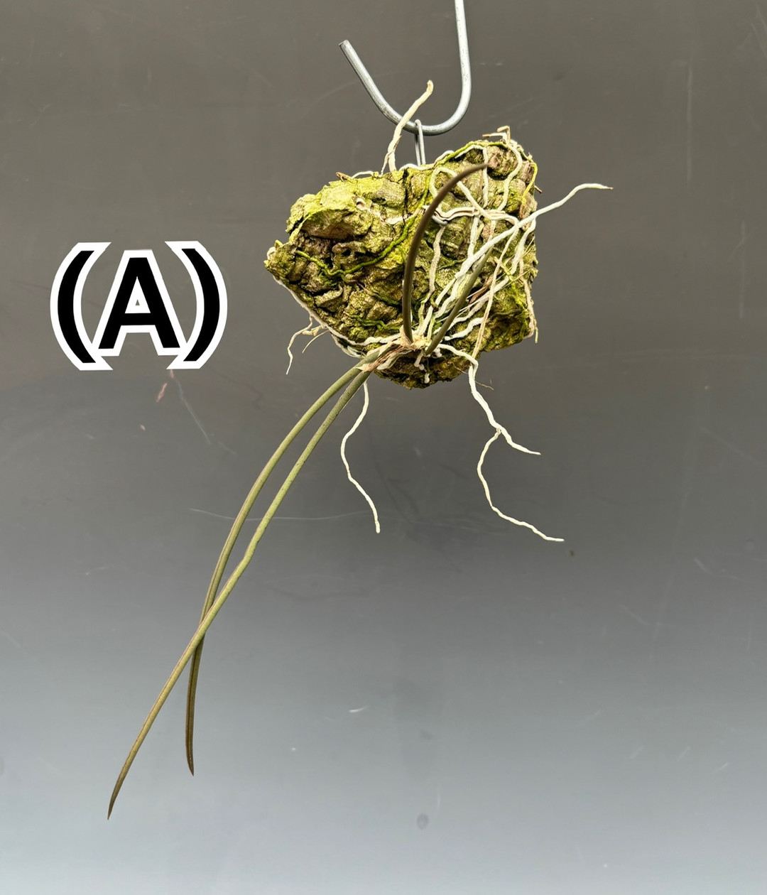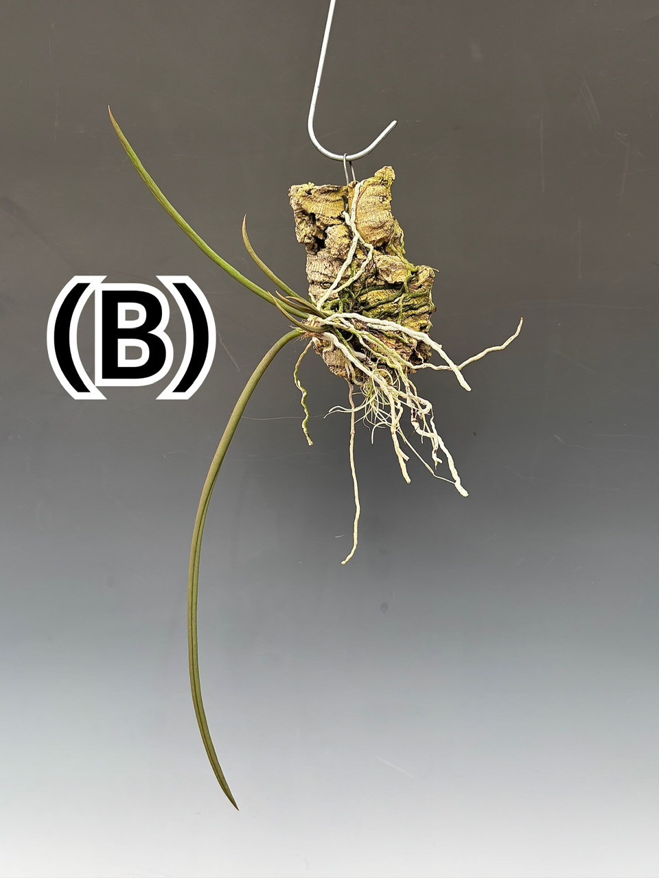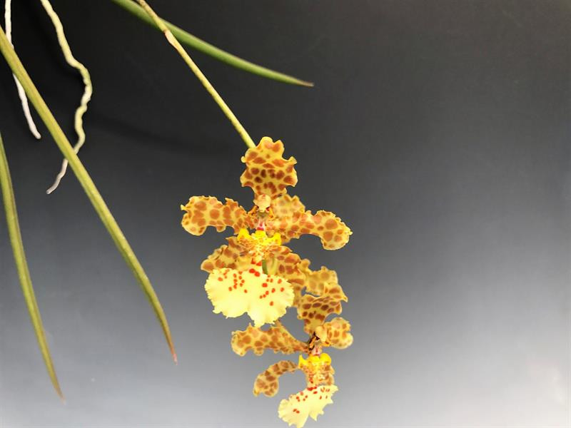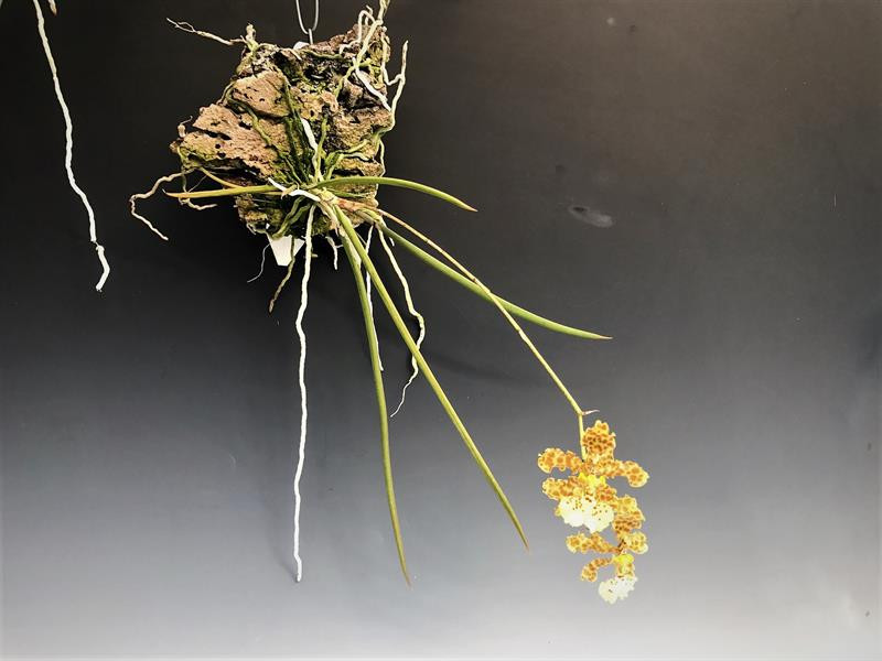 A very nice hybrid between these two incredible species. Upright growing rat tail leaves with hairy roots. The flower spikes produce nice sprays of yellow and white flowers with mahogany markings. The flowers are approx an inch or so in size and there can be as many as 15 to 20 flowers per stem when in bloom. These plants prefer slabs and are fairly drought tolerant.