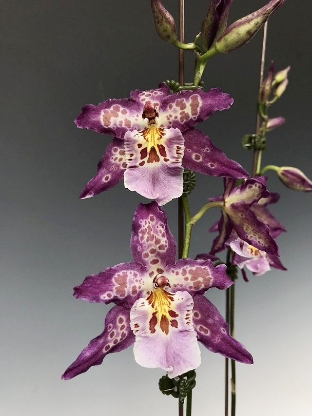 This intergeneric Oncidiinae hybrid produces beautiful purple, star-shaped flowers reminiscent of the famous Beallara Marfitch, but on a slightly smaller scale. Grow in low to medium light (bright, diffused light or an east-facing window) and water when the potting mix is nearly dry.