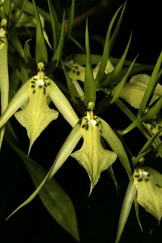 A nice Brasia species from Peru with 4-6 inch flowers that are greenish yellow with mahogany markings.