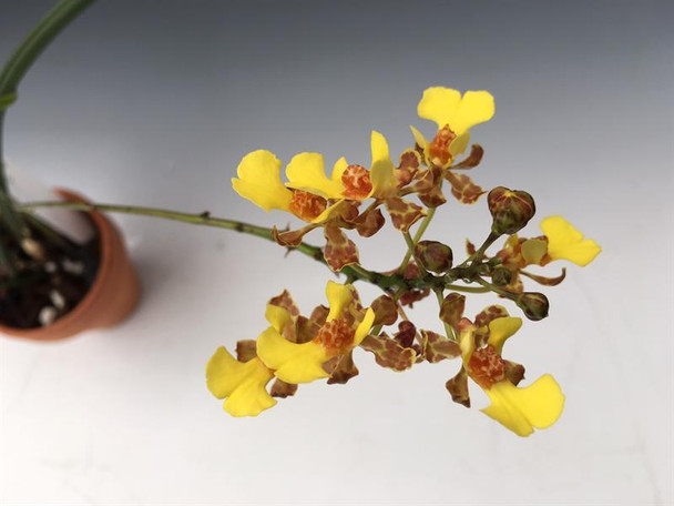 A beautiful rat-tail type Oncidium now classified in the genus Trichocentrum. This species is widespread throughout Central and South America and can even be found as far north as the Sonoran Desert. In Mexico, it can be found growing on oak trees and north-facing rock canyon walls. Allow the potting mix to dry well between watering unless this species is in spike or flower, at which time the mix should only be allowed to approach dryness.