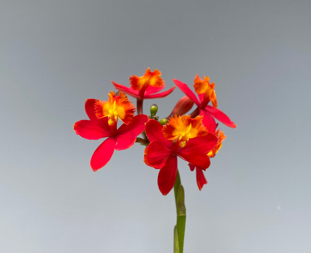 Multiple growth larger plants that will flower practically year round as the newer growths produce flower spikes when they mature. The color on these is fantastic with red and yellow in the lip. Each flower spike can bloom for several months! Don't cut the flower spikes unless they turn brown, as they can produce side branches. Grow in medium to high light and water as the potting mix approaches dryness.