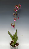A great Oncidiianae tribe plant with mule ear shaped leaves. The upright wide leaves are beautiful with vibrant green and a peppering of reddish spots. The waxy flowers are long lasting and have a superb light and sweet fragrance which develops a few days after the flowers open. Easy to grow with a fast draining potting mix and good light that can range from Phalaenopsis to Cattleya light. The flower spikes can get to be 2 feet tall and have branching.