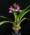 This is an intergeneric cross between Zygopetalum Imagination and Acacalis cyanea (=Aganisia cyanea). The name of this intergeneric cross is Zygonisia. These plants have been vigorous growers. The flowers are very nice, with a dark purple lip with petals that have a light green to lavender background overlaid with violet. The flowers are lightly fragrant