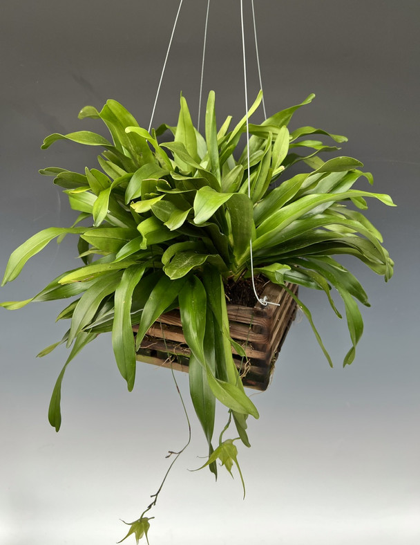 Here is a chance to own a specimen plant (about 15 years old) massive clump of Aeranthes caudata growing in an 8" basket. It is rootbound, but still happy and has not outgrown the basket yet, but is close! We are approximating about 20 or more growths are crammed into this basket. Since this is an old specimen that has been in the collection for many years, there may be a few battle scars. Nothing that stands out of the ordinary. One thing to note about dense specimens is they can get bugs deep inside. We looked and treated for bugs to be safe, and it appears to be clean.