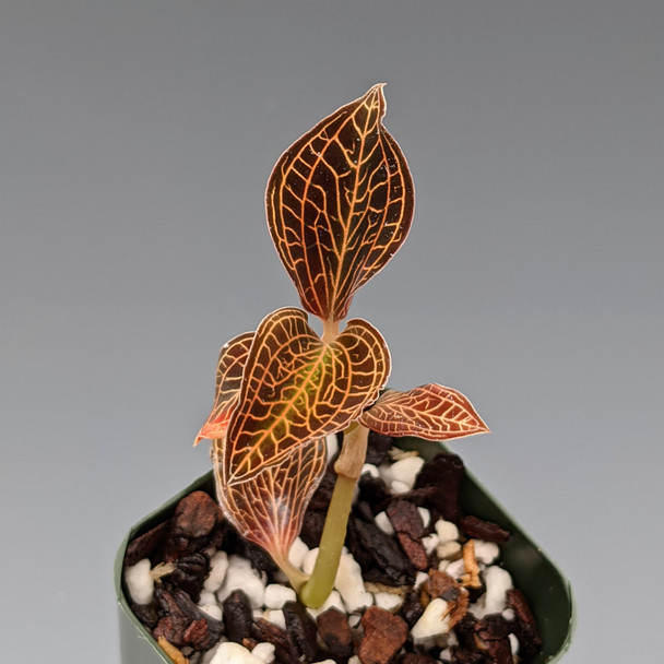 Native to Borneo, this great Jewel orchid is very distinct with its radiating veins of gold and red.
