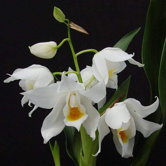 One of the best clones of this species from Vietnam, 'Brockhurst' stays compact but has large flowers (about 3 inches across) and is accompanied by a sweet fragrance.