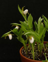 The white-pouched lady's slipper orchid. This plant is a Midwest American native. They prefer slightly alkaline soil. This plant is an outdoor perennial which can grow in Zones 3 to 5, and Northern Zone 6. These plants are seedlings and will probably flower in 2018 or 2019. They grow in prairie settings with a soil pH of 7.4. Adding powdered dolomite lime to the top of the soil once per year should keep the pH at the right level.