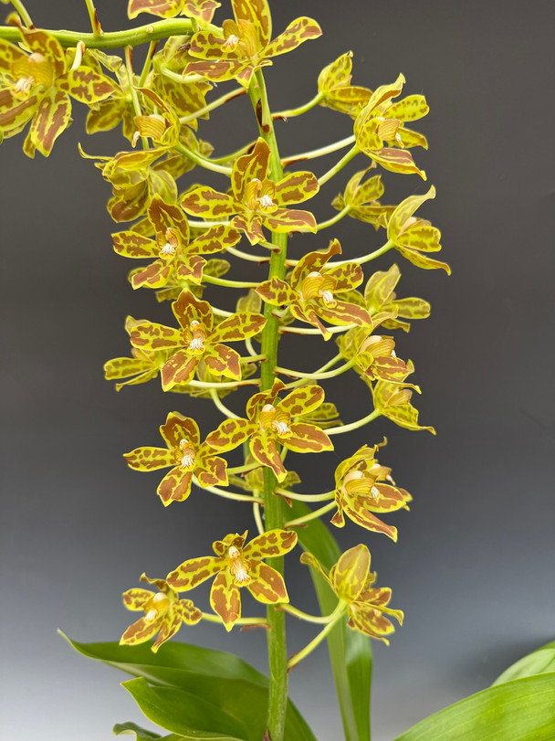 We’ve seen these orchids mounted and growing directly on trees in both Hawaii and South Florida. It’s one of the few orchids that can acclimate to full sun if needed. These bright-light-loving plants thrive in well-lit rooms, and during the darker months, they’ll need grow lights to continue progressing toward the next blooming season.