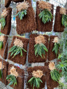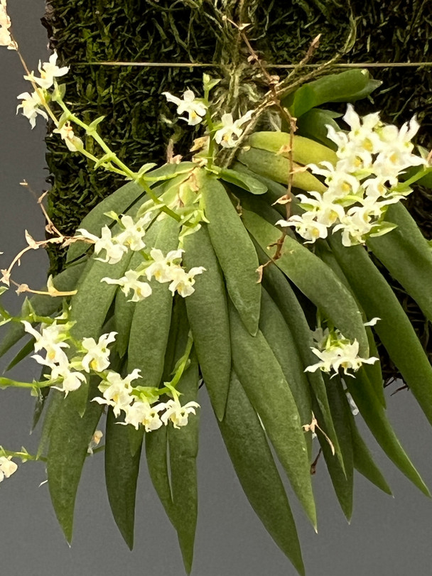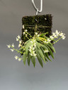 These plants are mounted on roughly 3" wide x 4" long tree fern slabs with a small amount of sphagnum moss on the roots for those who do not have high humidity. If you are growing in a case and watering daily, you may want to remove the sphagnum moss which is tucked under the fishing line.