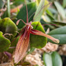 This miniature epiphyte originates from the rainforests of Ecuador, where it blooms all year round. These orchids spike from each individual leaf, displaying thin flowers that are orange to red with darker spots.