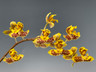Rudolfiella aurantiaca is a now rare species from the Rio Negro area in Brazil. It has beautifully shaped pseudobulbs with speckled pseudobulbs and stiff short Stanhopea like leaves. The slightly fragrant flowers are yellow with reddish mahogany markings and are borne on curved, upright to pendulous flower spikes.