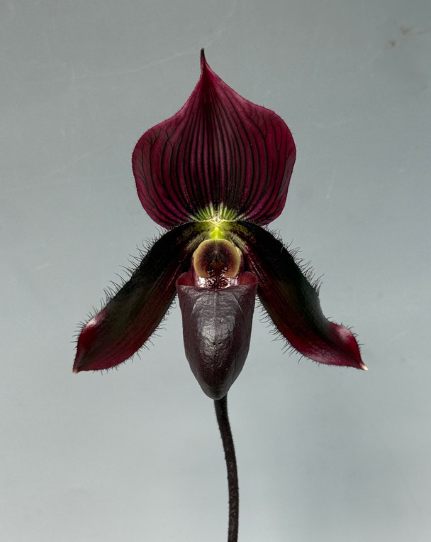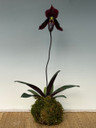 This is an excellent orchid for growing in the Kokedama style, as Maudiae-type Paphiopedilum hybrids thrive in moss and dry evenly in this setup.