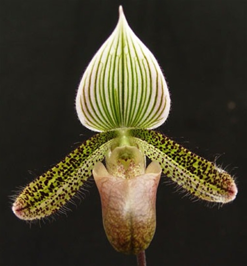 Paph. Auroreum album 'Green Flame' x wardii (half albino)