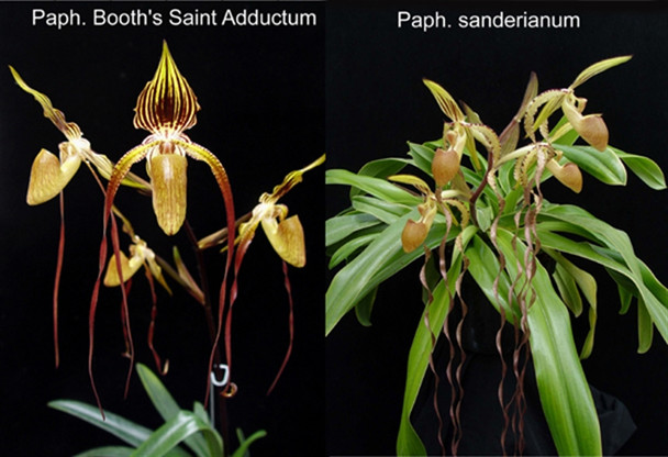 Paph. Booth's Saint Adductum x sanderianum 'Mississippi River'