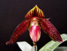 This is an interesting cross. Paph. Death Star is a hybrid that contains bellatulum, godefroyae and niveum . It looks pretty much like a bellatulum. The hybrid Paph Weltz Ballad made with Paph. bellatulum and adductum should be a pretty good representation of what it would look like except that this hybrid should be darker red in color and somewhat larger in size. The plants we offer have really good growth habit and vigor and do seem different to the Weltz ballad we have grown in the past. Limited to just two plants available.