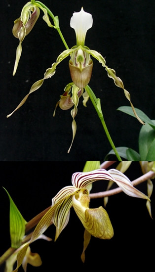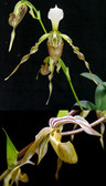 This is a new exciting primary hybrid between Paph. dianthum and Paph. kolopakingii. Expect many flowers per spike (up to 5 or 7) that will be olive green in color with a white dorsal with perhaps some darker veins towards the base. Very Limited!!