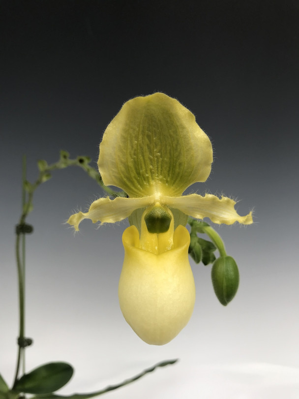 A very nice vigorous hybrid with beautiful green, yellow and lighter yellow flowers. The flower spikes can flower up to 2 years continuously, making this plant perpetually in flower. The new growths flower within a year from initiation. Once new flower spikes commence the older ones can be cut off allowing more energy to go to the front new growths and flowers. These plants like low to medium light and need to be watered every 4-5 days on average.