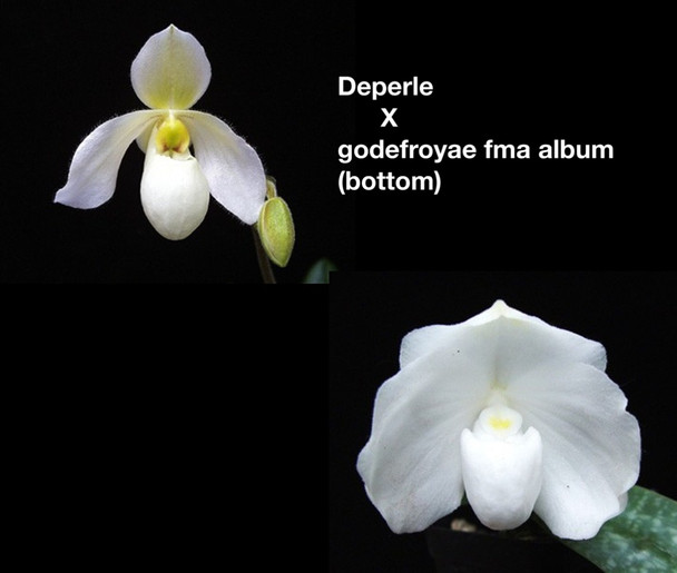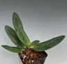 A slipper-lovers delight! A new, un-bloomed brachypetalum x parvisepalum cross with attractive foliage. Both parents used were white, but with different white recessive genes, and the offspring is showing red pigment at the base. Our best guess is a round flower with pink spotting similar to godefroyae. Grow in lower light, water once to twice per week depending on humidity levels and air flow.