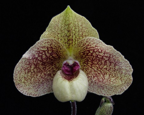 This new hybrid (pronounced Green-Tea-Ice-Cream-And-Raspberries) has flowers similar to Paph. Ma-Belle but larger and rounder in shape on a nice upright stem. The flowers are lightly fragrant! The picture above is of the first seedling that bloomed. This hybrid has currently the longest grex name!