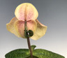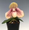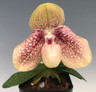 Large 4.5-5" flowers on a single short stem colored in ivory yellow and overlaid with burgundy markings throughout. The flowers are nearly as big as the plant! Excellent cross and fragrant as well.