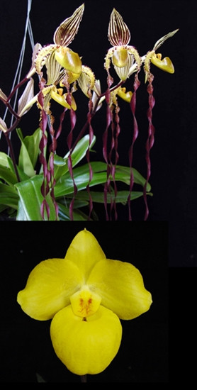 This is an exciting new multifloral/parvi cross, that should be similar to Paph. Michael Tibbs (philippinense x armeniacum), bright yellow but with longer down swept petals! Very Limited!