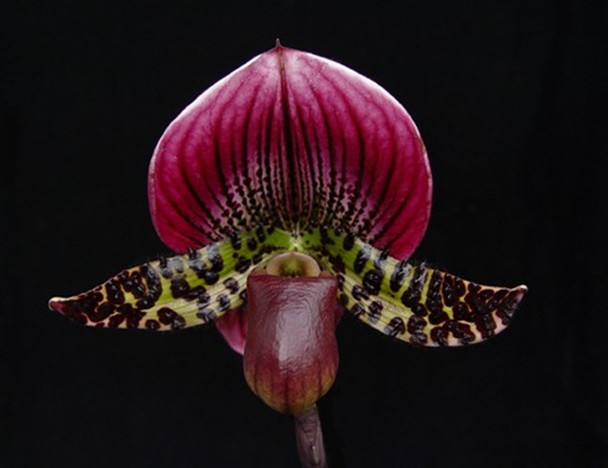 A superb cross with large striking flowers. There have been a very high percentage of excellent flowers from this cross. LArge vigorous plants. As with all Paphs one should bloom them at least twice to see the full quality potential of the flowers as size and shape often improves as the plants put on more growths.