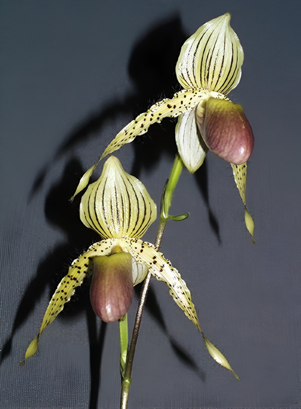 A primary cross of primulinum and rothschildianum. This is an easy-to-grow hybrid that can produce up to 3 flowers per spike. These are big and healthy plants growing in 4-inch containers with pine bark mix.