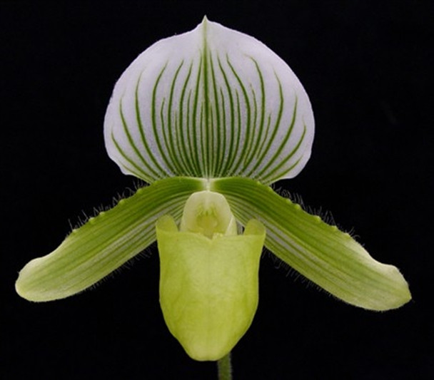 We remade this cross using the album forms of both an awarded Maudiae plant (Paph. Maudiae 'Magnifcum' FCC/RHS) and an album form of Paph. Makuli. These plants are easy to grow, and have nicely shaped flowers with flat dorsals.