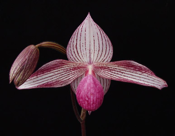This should be an interesting multifloral hybrid with pink to purple flowers. Expect about 3 to 4 flowers per spike! The picture shows one of the first seedlings to bloom from this cross.