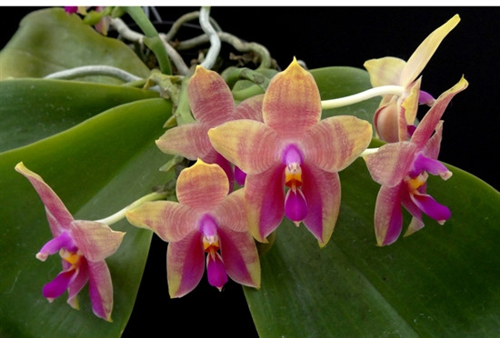 We are selling some of our "select" Phal. Guadalupe Pineda's. This is a cross between Phal. amboinensis and Phal. bellina. This hybrid is very fragrant! All these plants are 6 years old and mature. Most all have multiple flower spikes that will keep blooming from the same spikes for multiple years. Never cut them off, unless they turn brown! This particular clone has large flowers that are nicely shaped with wide petals. They have a distinct yellow background with contrasting almost circular red to magenta barring and magenta on the lower petals. The picture shown is the plant that you will be receiving.