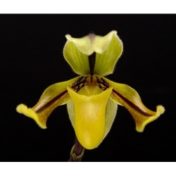Flowering-size single-growths of this now hard-to-find species. Fantastic plants tolerant of a lot of light and warm conditions. Beautiful glossy yellow flowers with a brown mid-vein in the petals and dorsal sepal. Long-lasting 1.5 to 2-inch flowers. Usually late summer to fall blooming.