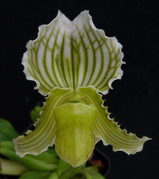 An orchid from the Indian Himalayas and Bhutan. This is a shade-loving, cool to warm-growing slipper that likes moisture at the roots at all times. It typically flowers between fall and spring months. The cute dutch hat type flowers are very intriguing and interesting to look at.