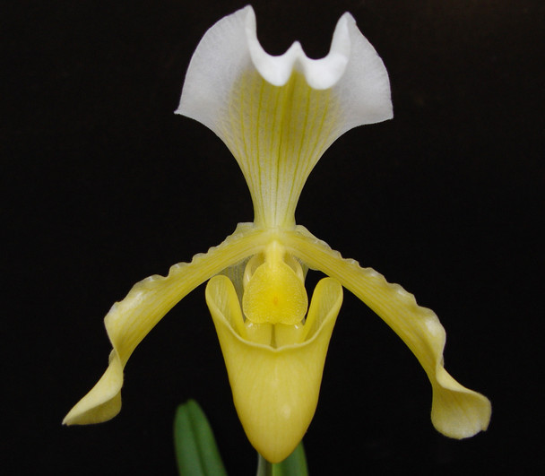 This species is native to India, Bangladesh, Nepal and the northwestern Yunnan province of China, where it can be found growing on limestone outcroppings. This orchid flowers in the late fall and winter, during which it prefers higher humidity around 80%. This variety produces a predominantly yellow flower with white edge accents, without any presence of spotting in the petals. The most magnificent and prized variety of this species!