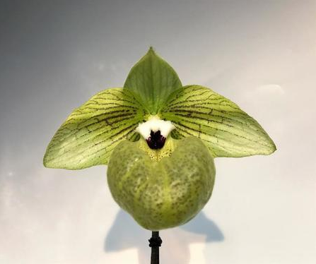 Native to China, this amazing species has very tall stems with large green flowers ,overlaid with burgundy markings. The tall 18-22" stems take about 6 months to develop once the flower spike begins at the center of the leaves. The flowers have the fragrance of a Minnesota White Pine! Grow this plant in intermediate to warm conditions in lower to medium light. Water as the mix approaches dryness. We recommend feeding every other time you water with Green Jungle Orchid Food.