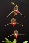 These modern day crosses are the finest examples of the "King of the Paphiopedilums", with flowers reaching 30 centimeters in width! The large flowers are stunning, with vivid dark colors and large, tall stems that can bear 3 to 5 flowers.