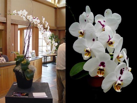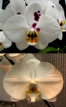 We have crossed one of our Harlequin type Phal's with a large standard white. The Harlequin parent gets irregular spots on the petals and has a white background. What is unusual about this parent is that it can get over 40 flowers per flower spike and can be in constant bloom for us (Before the old cane is done blooming it will send out a new flower spike). By crossing it onto a large standard white, we are hoping to improve the shape and size of the flowers, and hopefully maintain the number of flowers per flower spike. Probably half of the seedlings will have inherited the "Harlequin" type flowers with irregular dark red to purple spots on the petals. The picture shows the two parents. The close-up image shows the one parent: Dtps. Brother Vanessa Hannay 'Winter Carnival'. We are currently selling two different sized plants (based on leaf span). The smaller plants will come in 2.25" pots, while the larger plants will come in 3.25" pots.