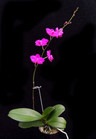 We crossed two of our most intense purple phalaenopsis to create this new hybrid. The flowers will look very similar to Dtps. Pixie Star, but slightly larger, and more flowers per inflorescence. The picture above shows a first bloom seedling.