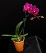 A cute miniature Phalaenopsis with dark purple flowers.