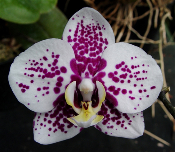 We crossed one of our Harlequin type flowers with a spotted hybrid. This cross will produce variable offspring. The picture shown is a seedling that shows the Harlequin type spotting.