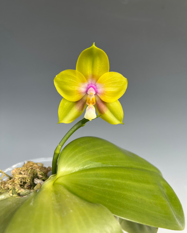 A section Polychilos Phalaenopsis. Big, fragant, waxy, and long-lasting flowers with big, waxy, and shiny foliage. Nice established plants in 4" production pot containers.
